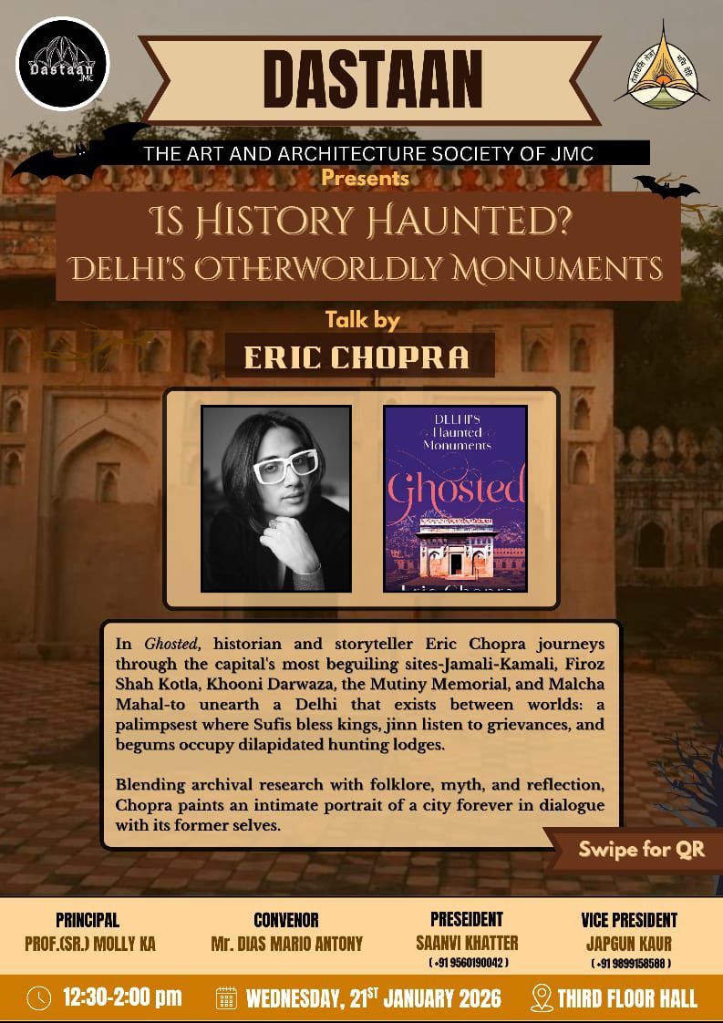 | 5 | Is History Haunted? Delhi's Otherworldly Monuments | Third Floor Hall | 21 Jan, 2026-21 Jan, 2026 | 12:30 pm -2:00 pm | 20 Jan, 2026 11:29 AM | Poster |